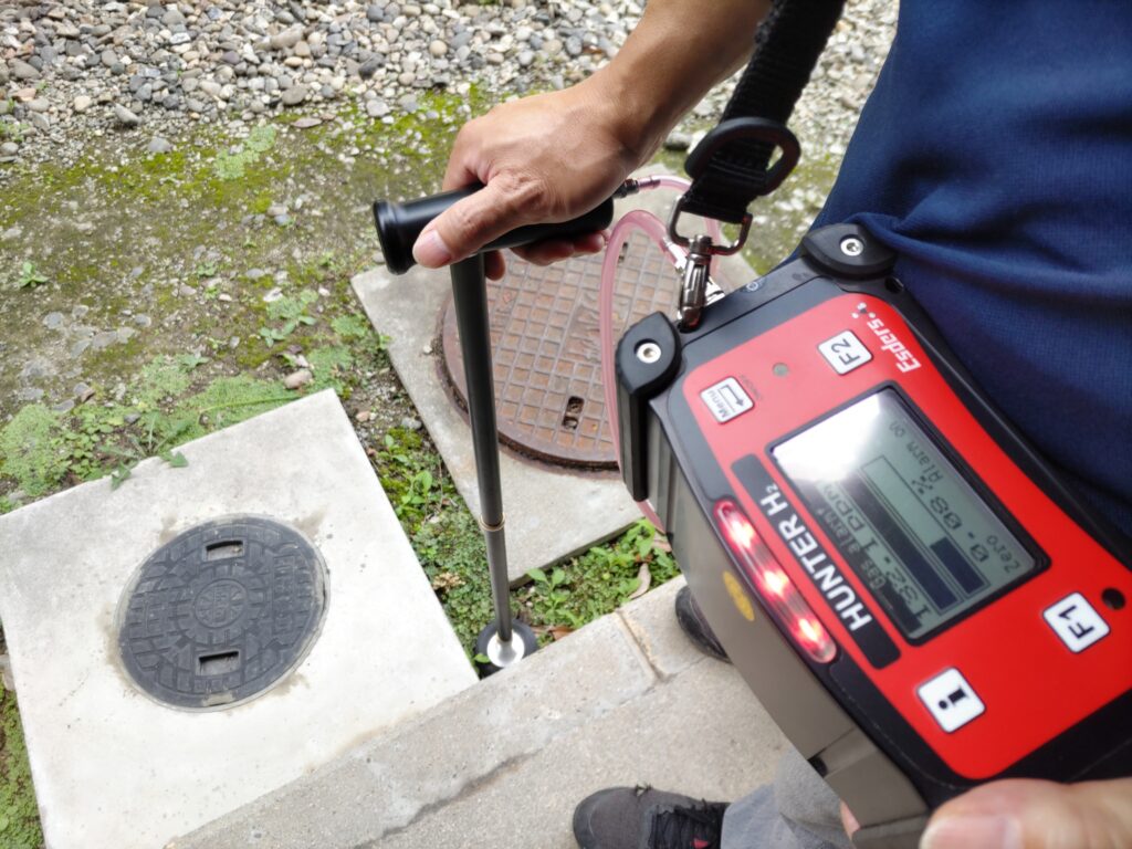 調査準備を行いトレーサーガスを充填して漏水の場所を探索していきます。