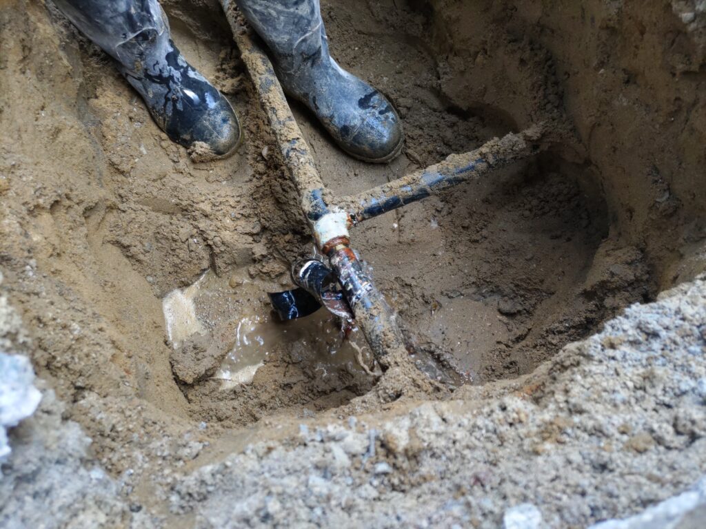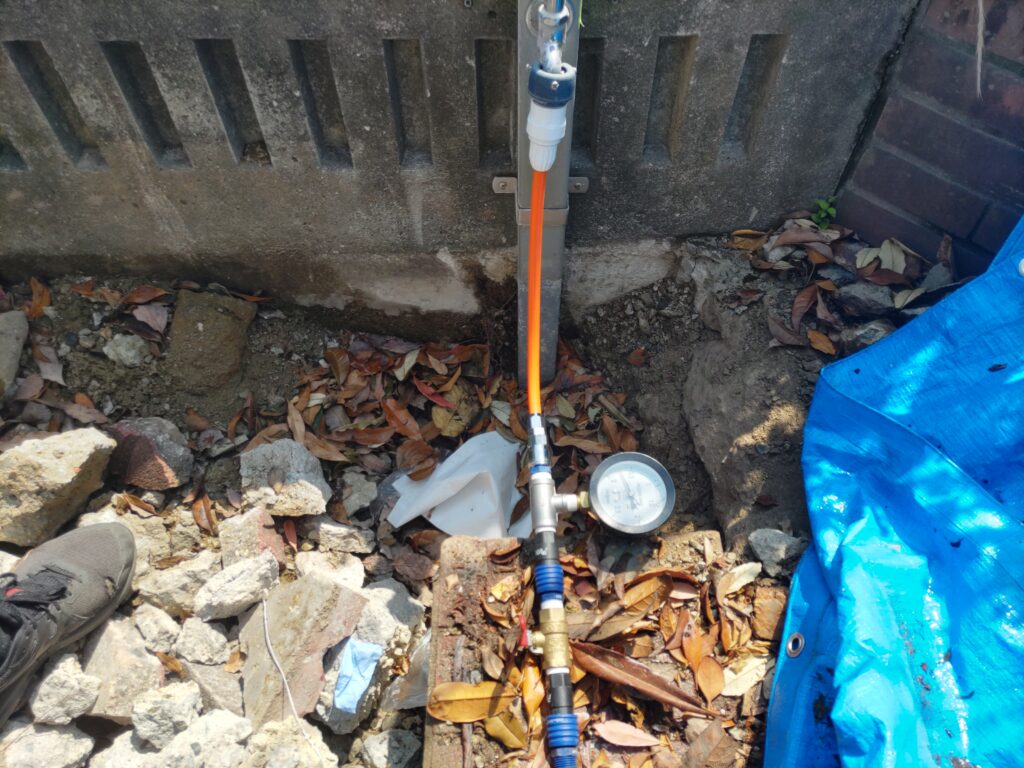穿孔すると地中の状態や漏水量などで水が沸いてくることもあります。