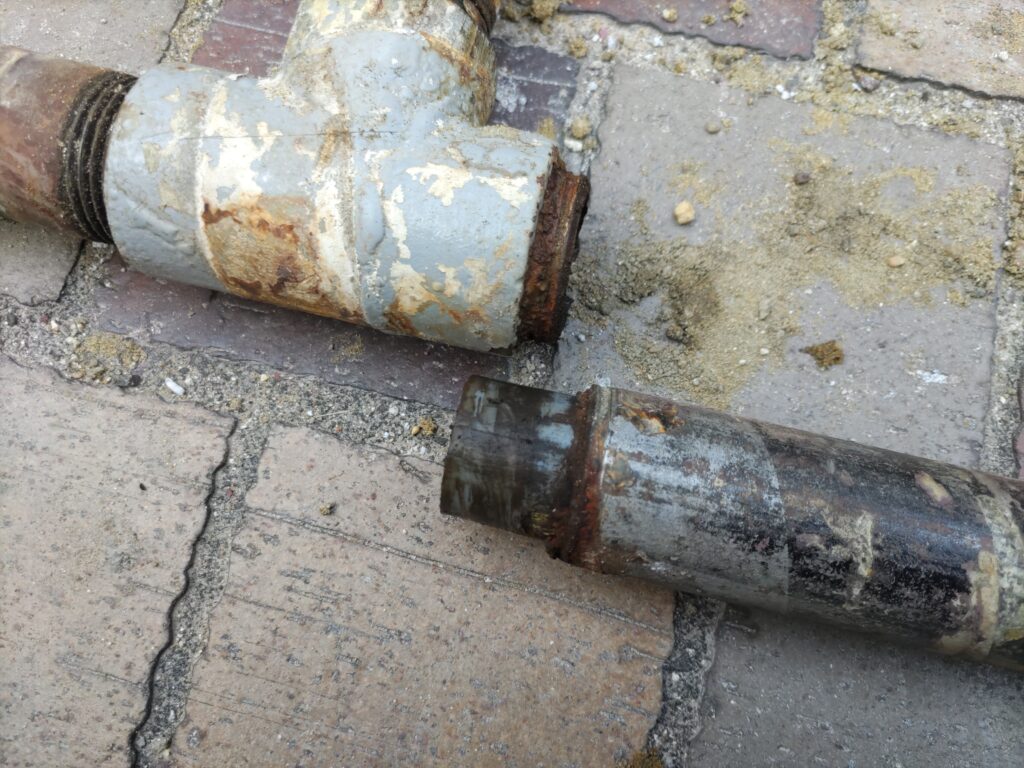 ねじ部分が腐食して内部のライニングだけになっていました。